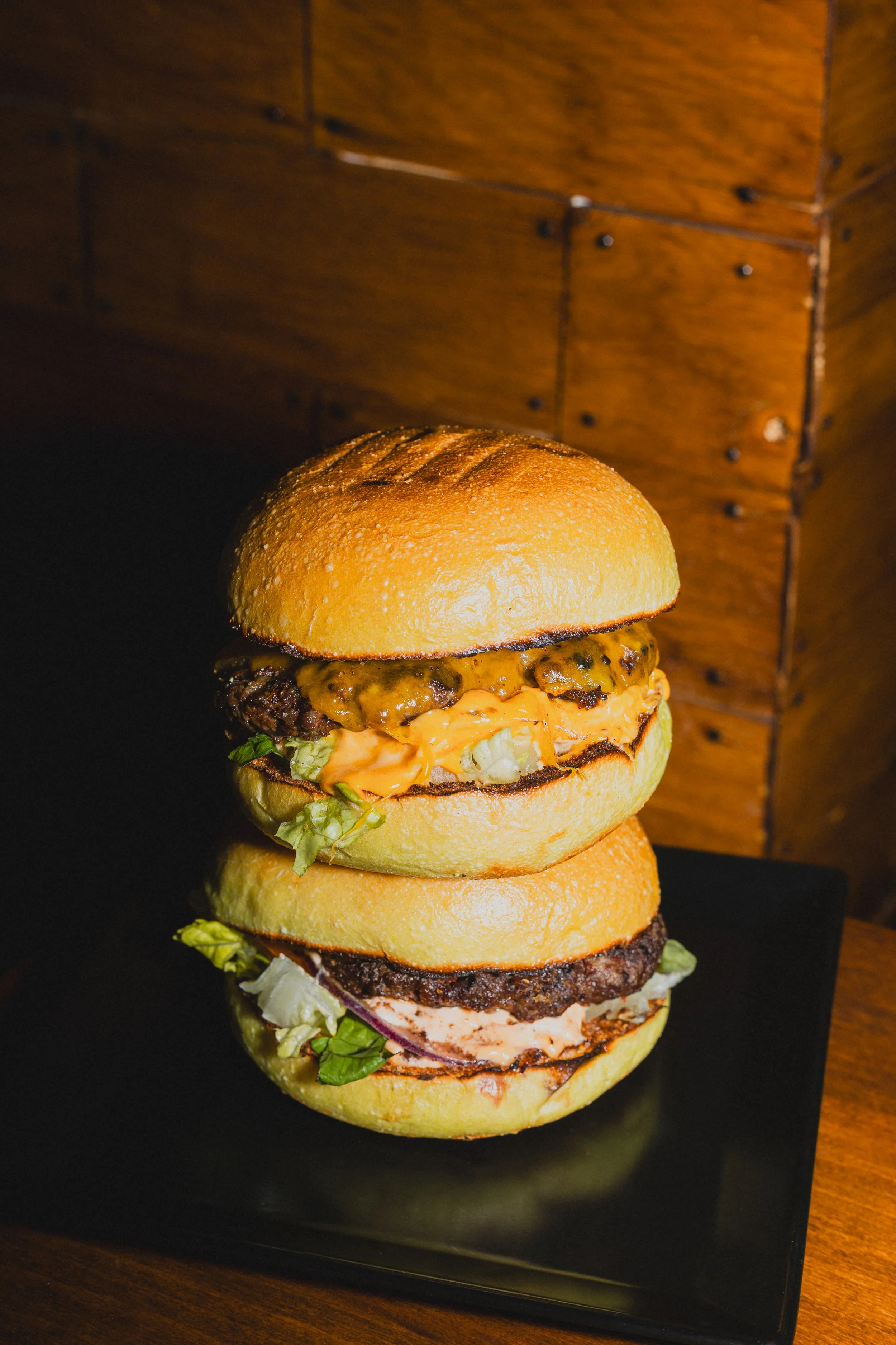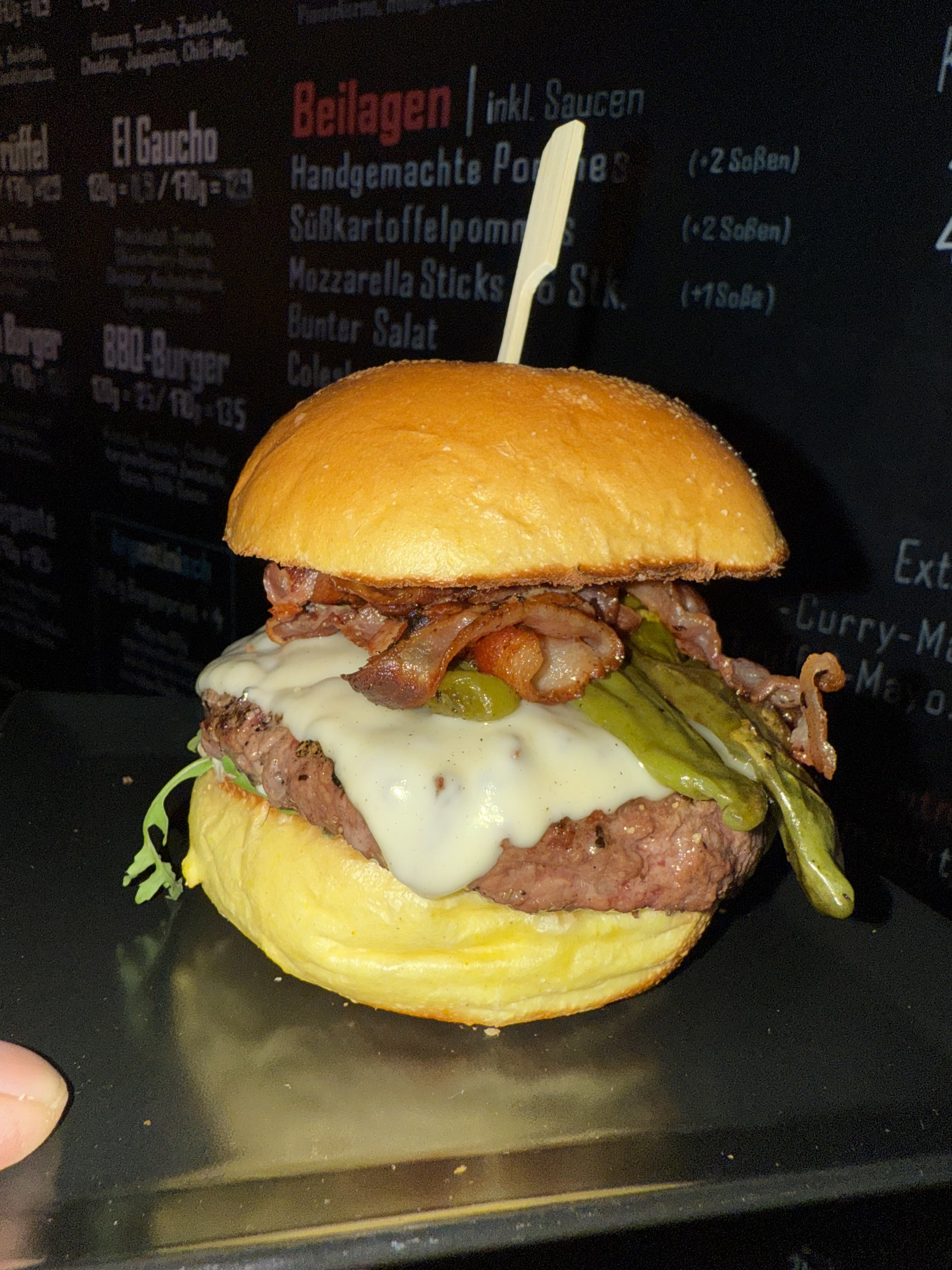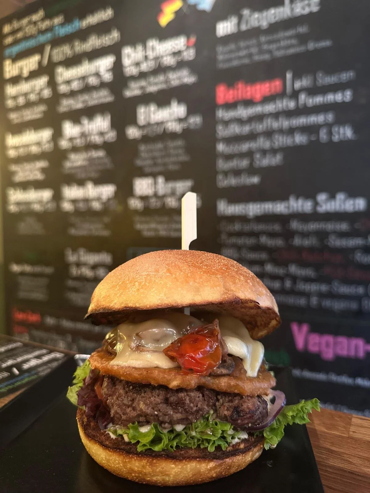 Diese Burger ragen heraus, weil sie ein Klassiker sind. Zugegeben, sie scheinen nichts Besonderes zu sein, doch bergen sie die Meisten knackigsten Zutaten unserer Küche. Zusätzlich sind wir Brühl-Bekannt für die Qualität unseres Fleisches, dass bei dieser Zusammenstellung besonders zum Ausdruck kommt. Obwohl du alle Zutaten zu kennen scheinst, kennst du sicherlich unsere super cremige Soße nicht. Das Rezept ist nämlich ebenso geheim, wie genial.